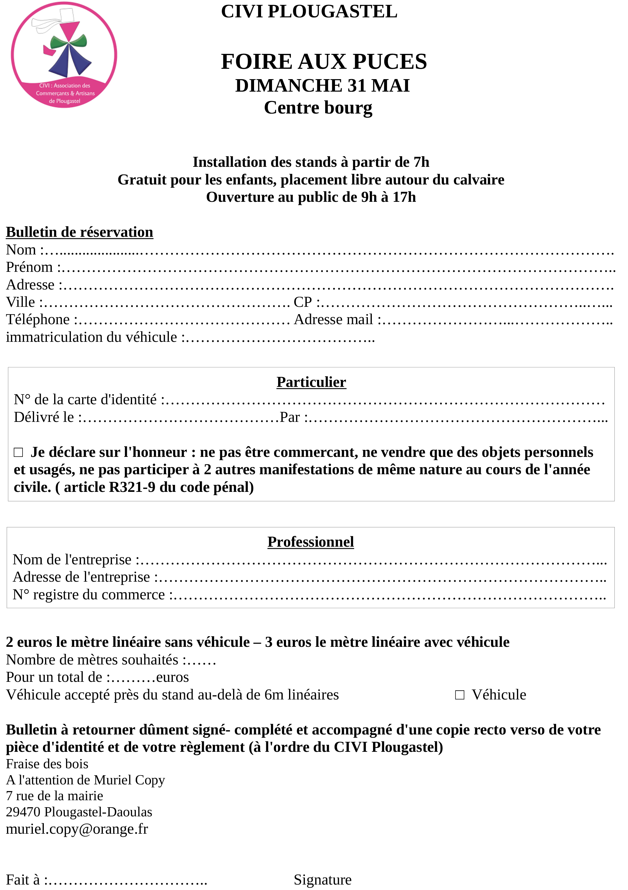 On vous attend nombreux pour cette 1ere foire aux puces, organisée par l'association civi, au centre bourg de plougastel.