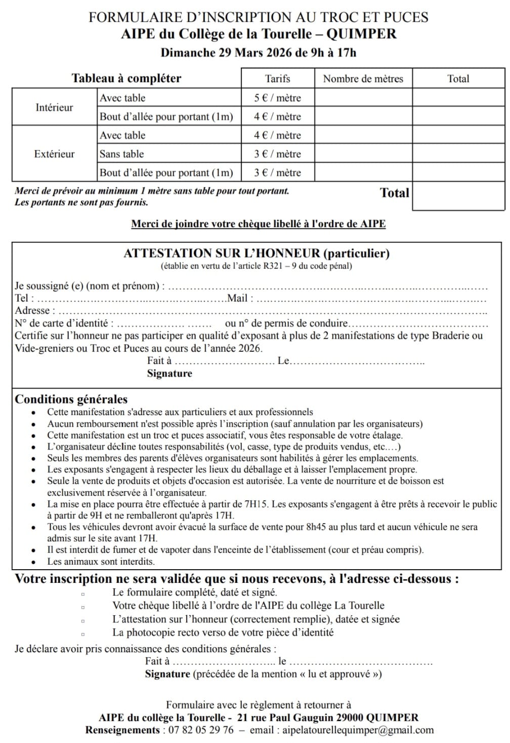 L'aipe organise son troc et puces le dimanche 29 mars 2026 de 9h à 17h au sein du collège la tourelle.