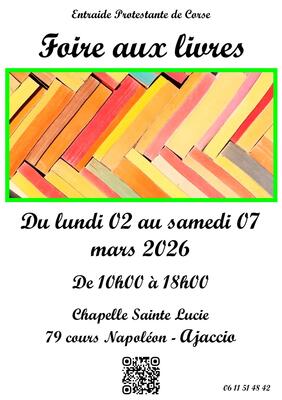 L’entraide protestante de corse organise une foire aux livres du lundi 02 au samedi 07 mars 2026.