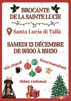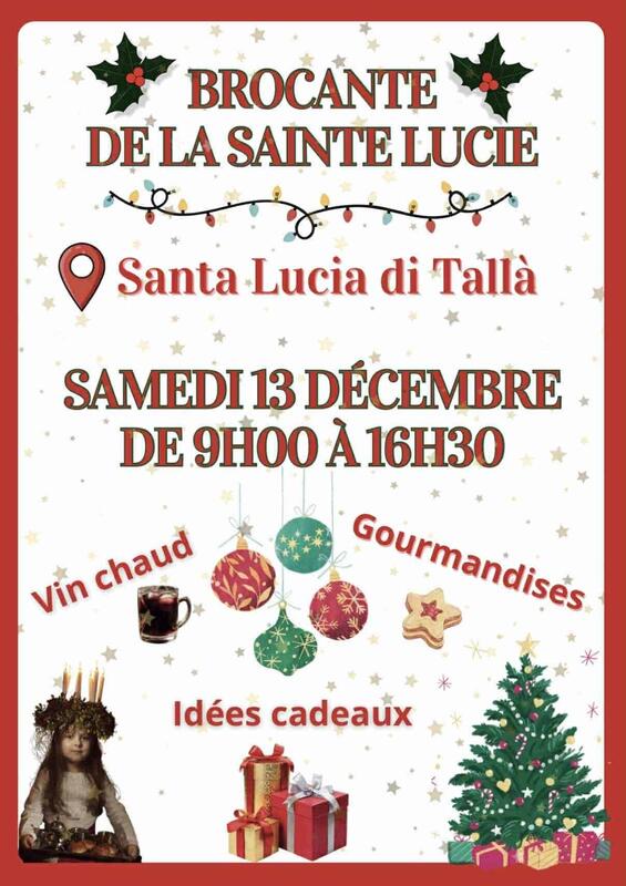 Plongez dans la magie de noël à santa lucia di tallà à l’occasion de la brocante de la sainte lucie, le samedi 13 décembre de 9h00 à 16h30.