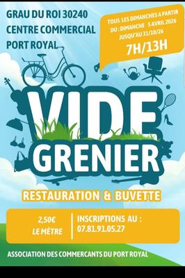 Vide grenier organisé par les commerçants du port royal pour dynamiser le centre commercial.