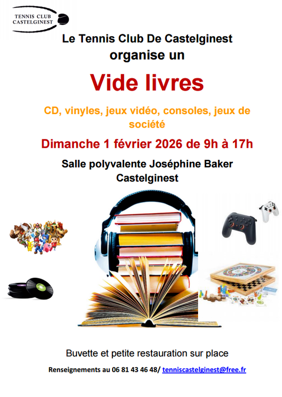 le tcc organise son vide livres annuel le dimanche 1er février de 9h à 17h dans la salle polyvalente de castelginest