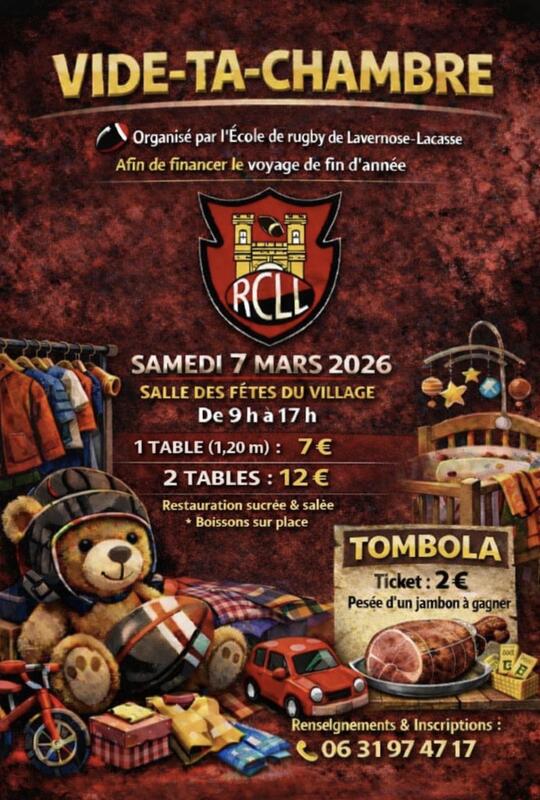 Vide ta chambre organisé par l'école de rugby de lavernose-lacasse afin de financer le voyage de fin d'année.
