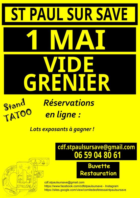 Le comité des fêtes de st paul sur save pour propose son vide grenier et sa foire artisanale annuel.
