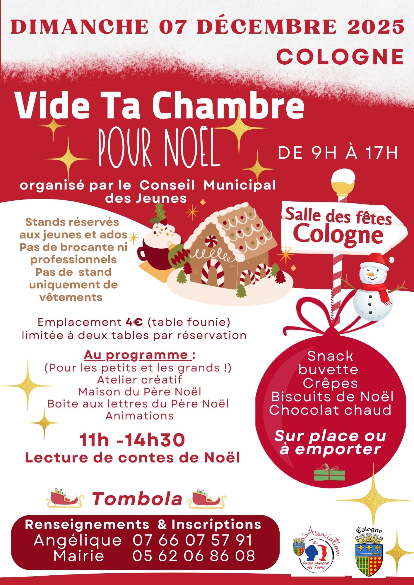 animations diverses, atelier créatif, stand du père noël, tombola