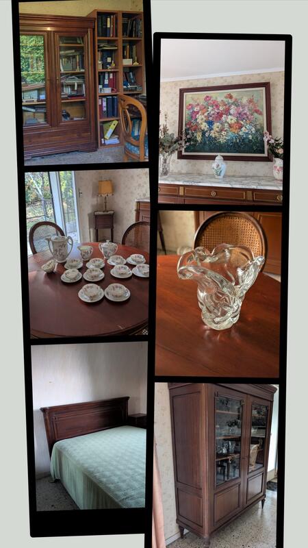 Mobilier, vaisselle, matériel de cuisson amc, cristaux, vases, bibelots, décoration, tableaux, luminaires,