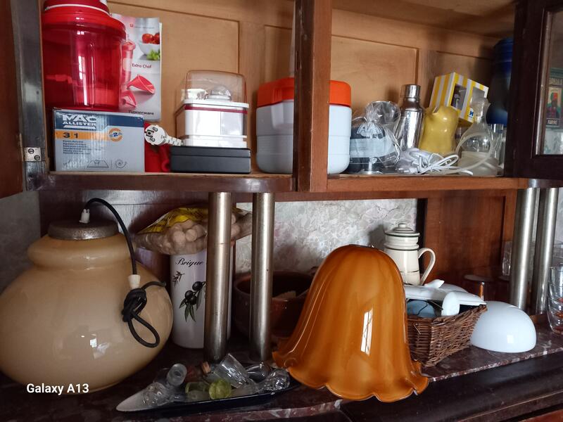 2 lits de 90x190cm structure métal (dont 1 avec 3 panières de rangement osier métal) linge de lit 90x190 couette traversin vêtements t46/48 été hiver chaussures 40 penderie table à abattants et rallonges frigo tv et meuble 1 fauteuil de bureau an.40 2 fauteuils tissu/bois boîte boutons tissus foulards soie matériel de cuisine pro vaisselle duralex vaisselle ancienne et contemporaine cartes postales matériel de pêche hi-fi outillage... Liste non exhaustive
