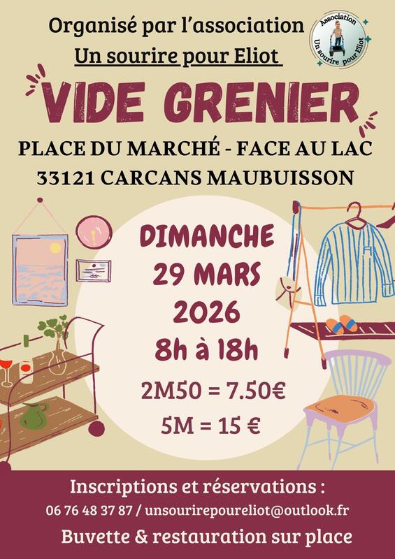 Vide grenier sur la place du marché, face au lac de maubuisson.