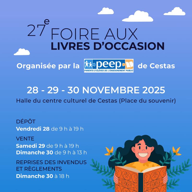 Vente de livres d'occasion organisée par l'association de parents d'élèves peep cestas.