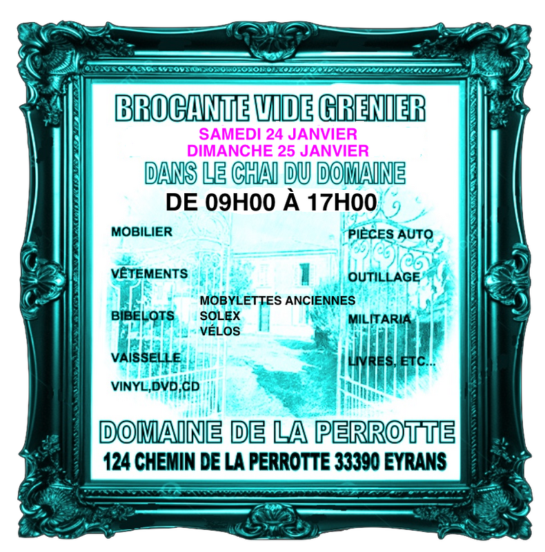 Samedi 24 et dimanche 25 janvier 2026 au domaine de la perrotte , vide grenier-brocante au 124 route de la perrotte domaine de la perrotte 33390 eyrans.