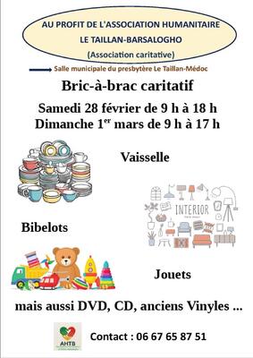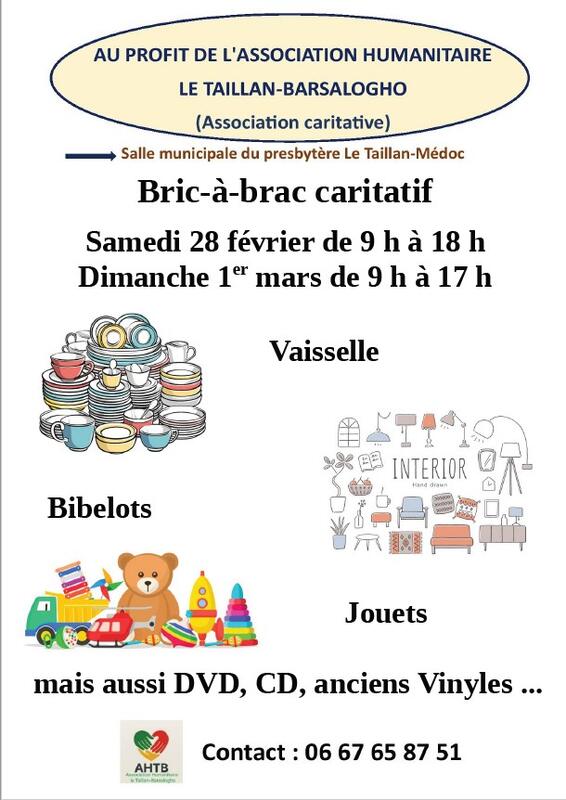 Il s'agit d'un vide-grenier organisé par l'association humanitaire le taillan-barsalogho.