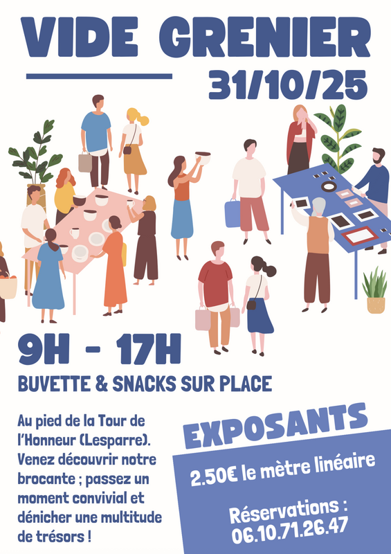 Venez découvrir notre vide-greniers; passez un moment convivial dans le parc de la tour de l'honneur et découvrez une multitude de trésors. Ouverture au public de 9h00 à 17h00. Entrée gratuite pour le public. Food-truck sur place.