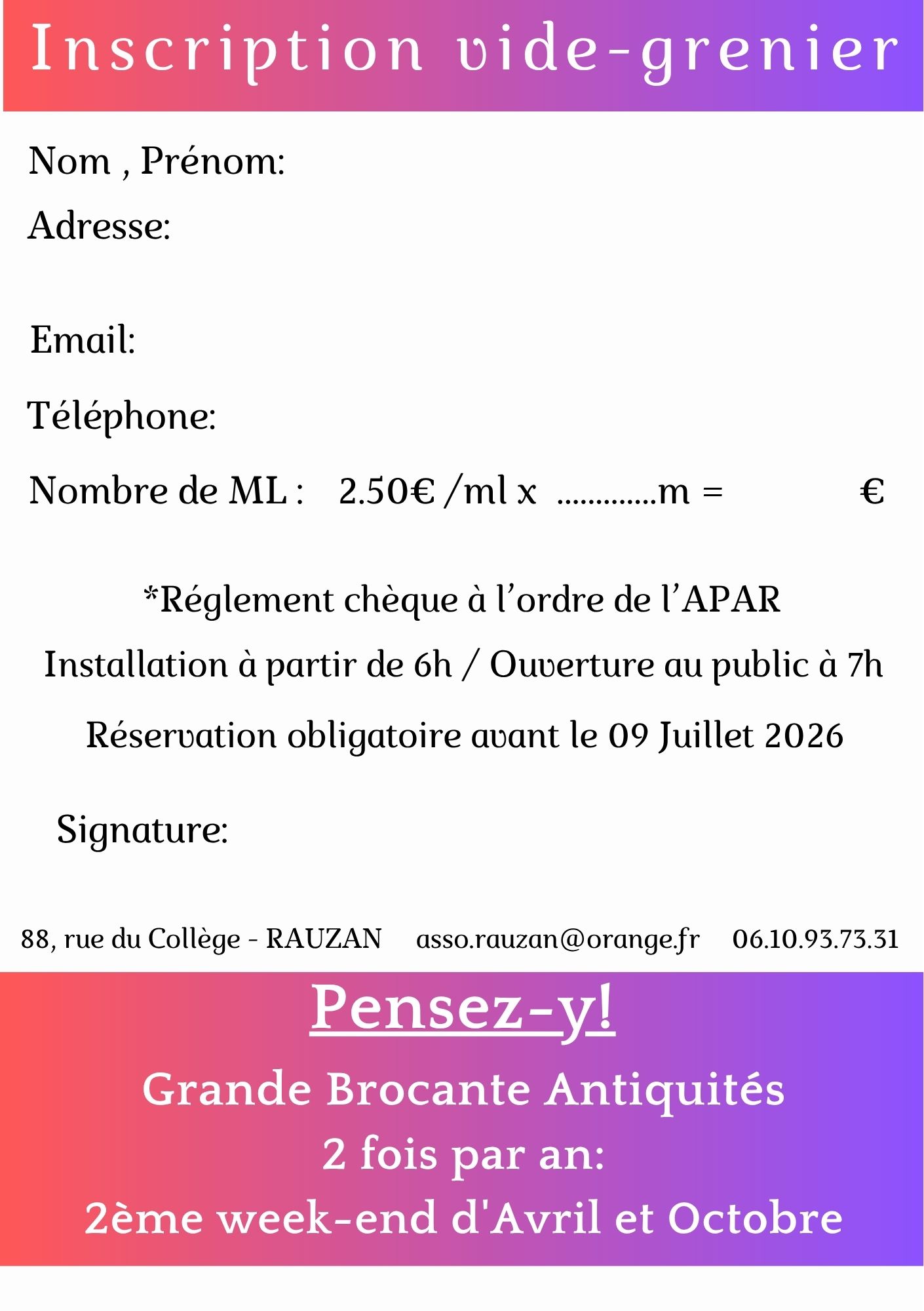 Grand vide grenier à l'occasion de la grande brocante d'été des 11 et 12 juillet 2026