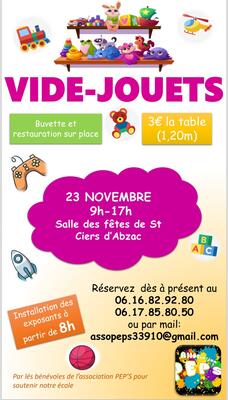 Après quelques années d'absence nous sommes heureux de vous annoncer le retour de notre vide jouets au profit des enfants de notre école