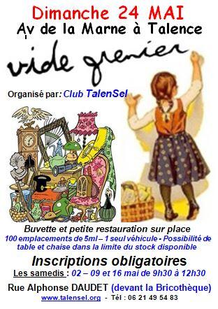 Vide-grenier, organisé par le club talensel, avenue de la marne résidence thouars, sur les espaces verts à l'arrière des bâtiments.