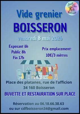 Le comité des fêtes de boisseron organise comme tous les ans son vide grenier du 8 mai .
