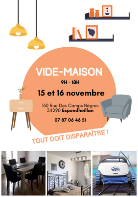 Chambre complète, meubles bas, vaisselle, outillage, accessoires de jardin et de piscine (chaises longues, coussins, etc.), électroménager… et bien plus encore !