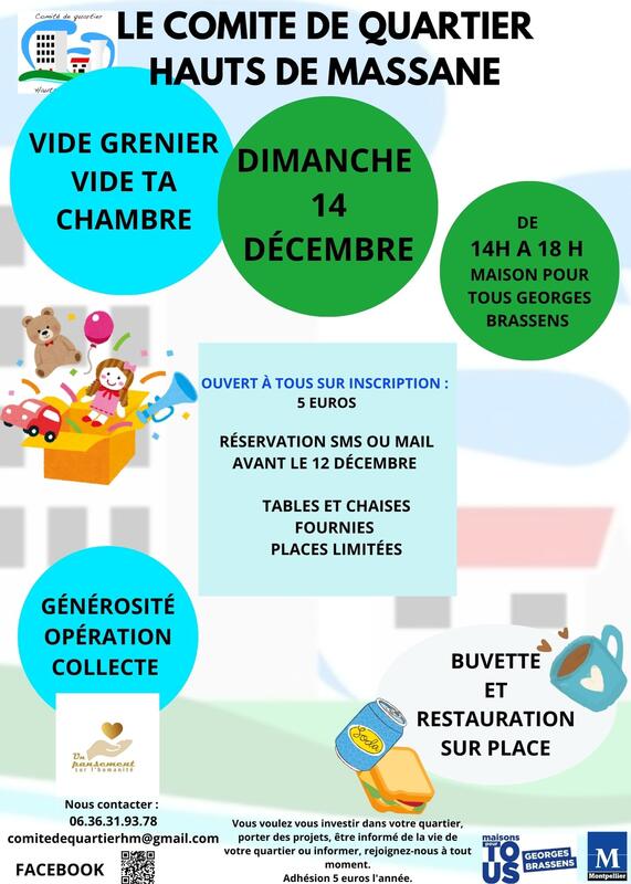 Ouvert à tous sur inscription 5€ avant le 12 décembre par e-mail ou sms au comité de quartier des hauts de massane