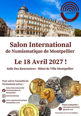 Grand salon international numismatique de montpellier, visiteurs professionnels et particuliers, exposants professionnels uniquement ! Buvette, parking sous la salle. Entrée nominative avec carte d'identité, vidéosurveillance importante, service de sécurité... Navette privée de l'aéroport et des gares. Une salle dédiée aux sociétés savantes (sena...), auteurs, éditeurs, fabricants... Une salle dédiée aux marchands professionnels (monnaies, billets, médailles...)