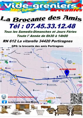 Tous les samedis, dimanches et jours fériés, brocantes et vide greniers la brocante des amis à portiragnes.