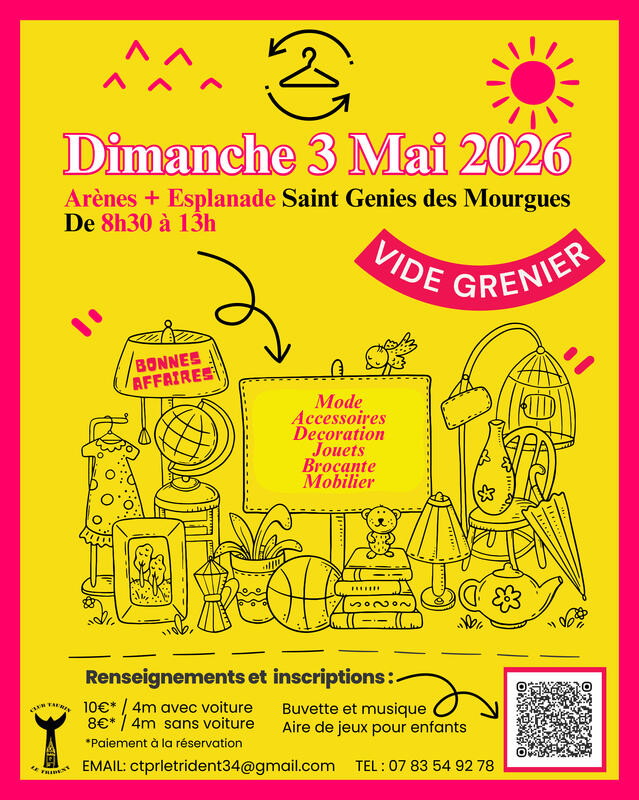 Le club taurin 'le trident' organise son vide grenier le dimanche 3 mai 2026 des arènes à l'esplanade de saint-geniès-des-mourgues :