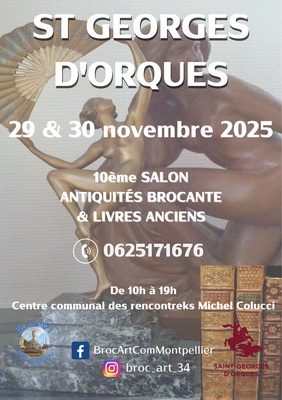 C'est la 10ème édition de ce salon d'antiquités brocante et livres anciens, qui aura lieu, les 29 et 30 novembre 2025 au centre communal des rencontres michel colucci à saint georges d'orques.