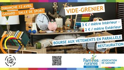 Vide grenier de familles rurales à lieu dans le gymnase, en parralelle de la bourse aux vetements (dans la salle emeraude)