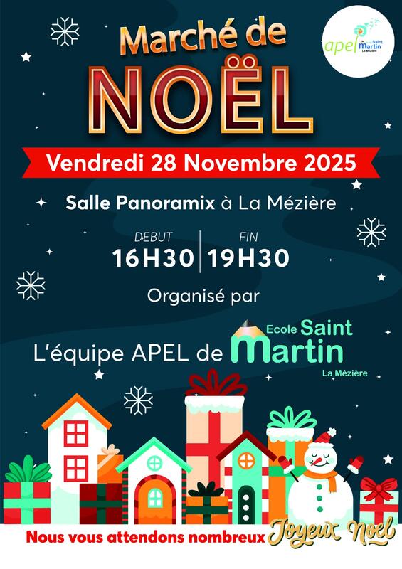 Marché de noël vendredi 28 novembre de 16h30 à 19h30 salle panoramix – la mézière venez partager un moment convivial et festif ! Découvrez le savoir-faire de nos artisans et créateurs locaux. Au programme : de jolies idées cadeau une ambiance chaleureuse vin chaud et chocolat chaud sur plac