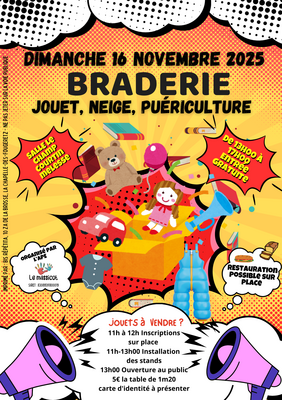 Le massicot - association des parents d'élèves des écoles publiques - organise sa traditionnelle braderie du jouet, puériculture 0-3 ans et affaires de ski le dimanche 16 novembre de 13h00 à 17h00 à la salle le champ courtin de melesse. Ouverture au public de 13h00 à 17h00. Entrée gratuite. Restauration sur place. Venez nombreux pour brader et chiner toujours dans la bonne humeur !