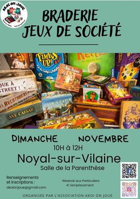Bonjour à tous suite aux succès des précédentes éditions, nous vous proposons notre 3ème braderie jeux de société dans une salle plus grande pour vous permettre de trouver des pépites si vous souhaitez venir vendre vos jeux contactez-nous par mail : partagez sans modération dans l'attente de vous retrouver ... Akoi on joue