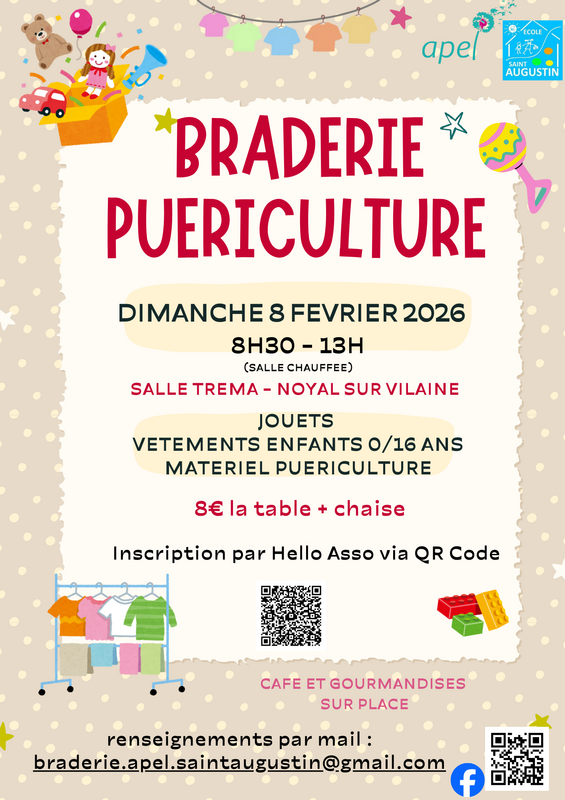 nous avons le plaisir de vous annoncer notre 3ᵉ braderie de puériculture, qui aura lieu le dimanche 8.02.