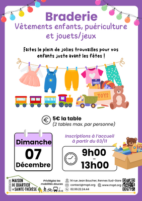 Braderie vêtements enfants, puériculture et jeux et jouets