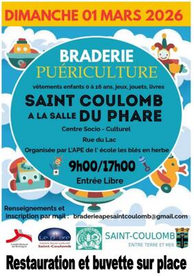 Braderie de puériculture à la salle du phare de saint coulomb vente de vêtements enfants de 0 à 16ans, jeux, jouets, livres. Organisée par l'ape de l'école les blés en herbe.