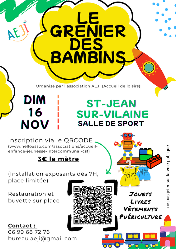 L'aeji (centre de loisirs) organise son tout premier vide-greniers spécial enfance et jeunesse !