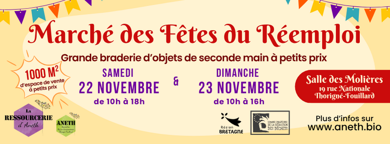 Les 22 et 23 novembre prochains, la ressourcerie d'aneth organise son 1er marché des fêtes du réemploi, dans la cadre de la @serd - semaine européenne de réduction des déchets. Un grand évènement gratuit, festif et convivial, pour les grands et les petits. L’occasion de découvrir ou redécouvrir comment consommer autrement, pour faire un geste pour la planète comme pour son porte-monnaie et pourquoi pas faire vos achats de noël autrement ?