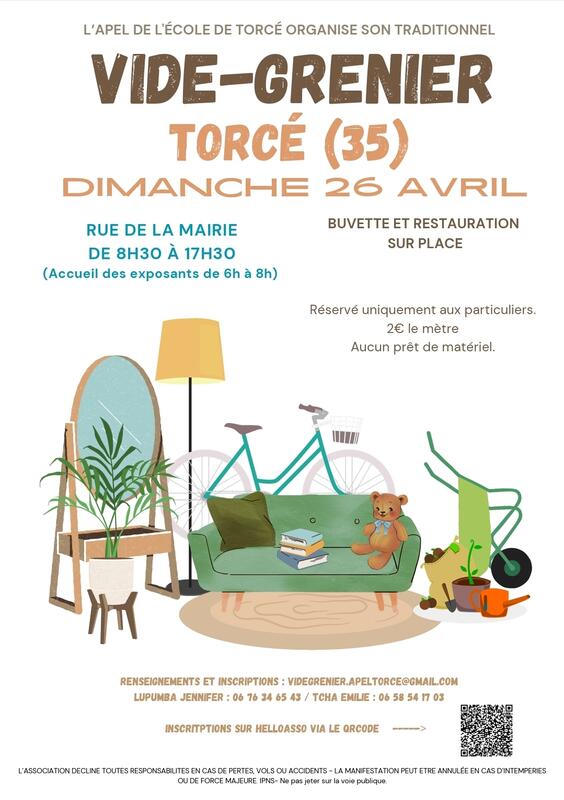 vide-grenier de 8h30 à 17h30 ( accueil des exposants à partir de 6h)