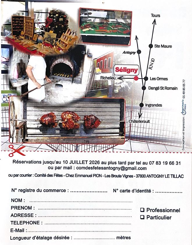 Pour les exposants : les réservations sont prises jusqu'au 10 juillet 2026 au plus tard et sont maintenues jusqu'à 7h30, le jour de la fête.