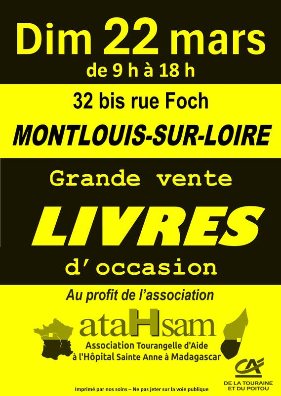 Grande vente de livres d'occasion à trés petit prix au profit de atahsam ( association tourangelle d'aide à l'hopital sainte anne de madagascar)