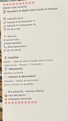 buffet • table de salle à manger avec chaises • lit bébé • baignoire •salon de jardin • table basse • fauteuil • commode …