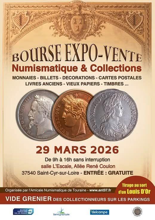 Bourse - expo-vente numismatique et collections (monnaies, billets, décorations, cartes postales, livres anciens, vieux papiers, timbres etc.).