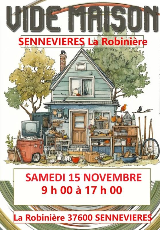 De 9 h 00 à 17 h 00 grand vide maison au 7 la robiniere 37600 sennevieres