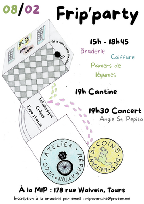 Nous organisons une braderie solidaire, l'installation du stand est gratuite, nous vous encourageons à vendre vos produits à prix libre, et vous demandons de reverser une partie de vos ventes en prix libre à la mip (maison internationale populaire).