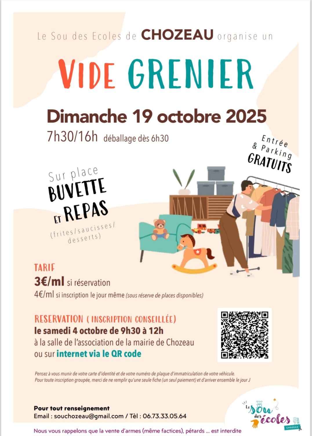 Le traditionnel vide grenier organisé par le sou des écoles de chozeau aura lieu le dimanche 19 octobre 2025.