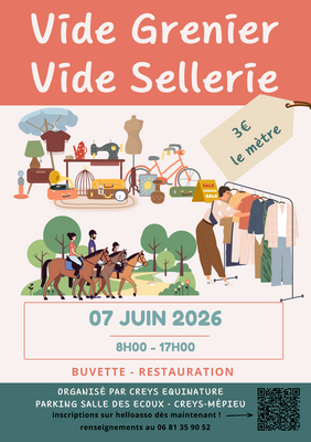 Notre annuel vide grenier et vide sellerie aura lieu le dimanche 7 juin 2026. Venez vider votre grenier et vos écuries (vide grenier ouvert à tous et pas uniquement aux cavaliers !!)