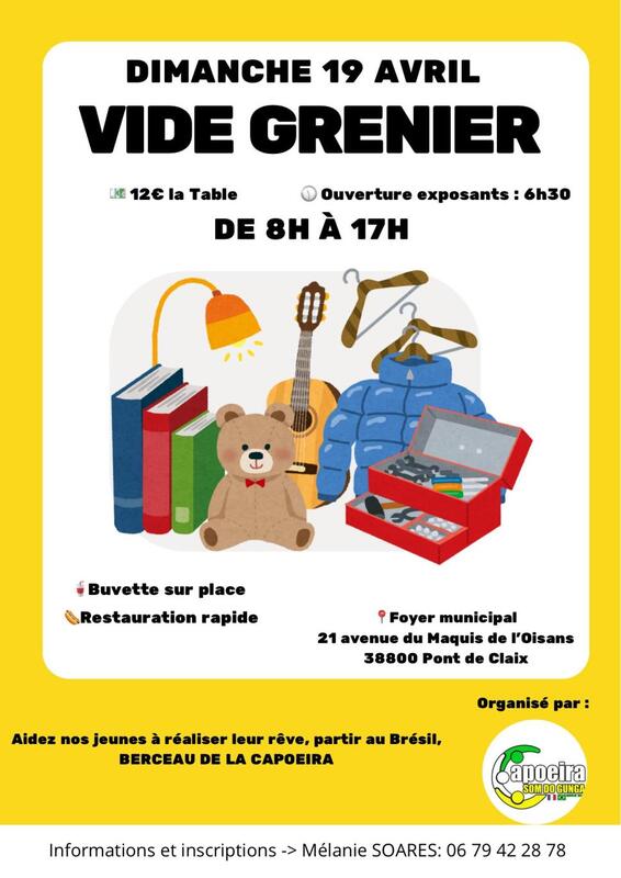 L'association som do gunga organise son vide-greniers le dimanche 19 avril au foyer municipal pour financer le voyage des jeunes au brésil, berceau de la capoeira.