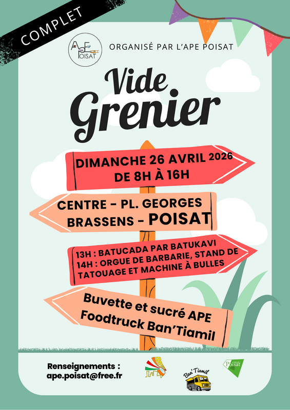 Traditionnel vide grenier organisé par l'ape poisat avec plus de 70 exposants et au coeur du village pour cette nouvelle édition!