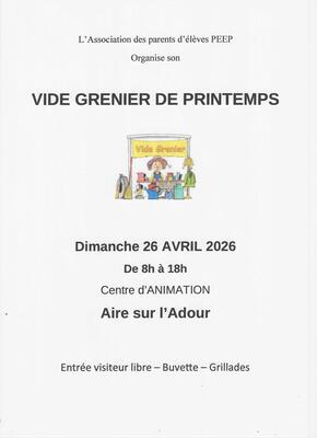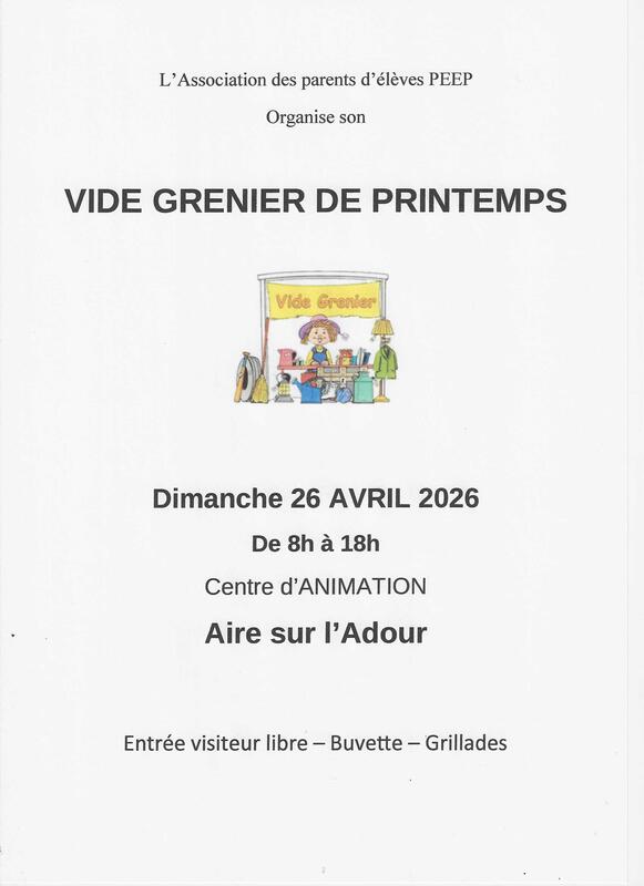 nous vous attendons au centre d'animation d'aire sur l'adour le dimanche 23 avril à partir de 9h pour faire des emplettes, chercher la bonne affaire ou simplement vous promener en passant un bon moment.