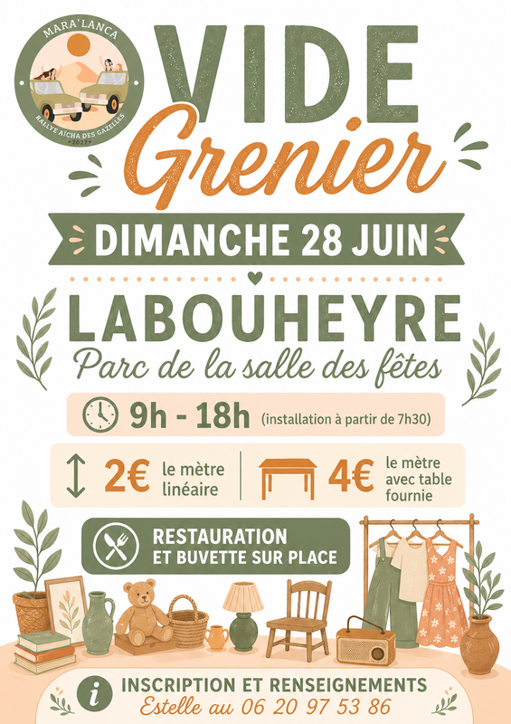 Vide grenier organisé par l’association mara’lanca pour financer leur participation au rallye aïcha des gazelles.
