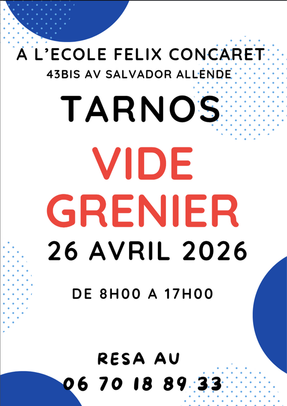 Nous organisons notre vide grenier le 26 avril 2026 à l école félix concaret - tarnos.