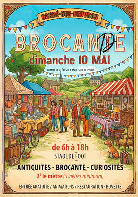 Brocante du 10 mai, de 6h à 18h, sur le stade de foot de candé-sur-beuvron.